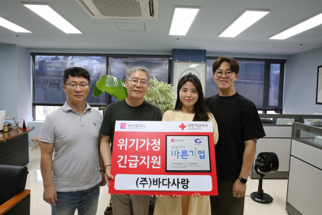 (주)바다사랑(대표 김광식)은 최근 대한적십자사 부산지사(회장 서정의)의 나눔확산 캠페인인 ‘씀씀이가 바른기업’에 참여해 지역 사회를 위한 나눔을 실천하기로 약속했다.