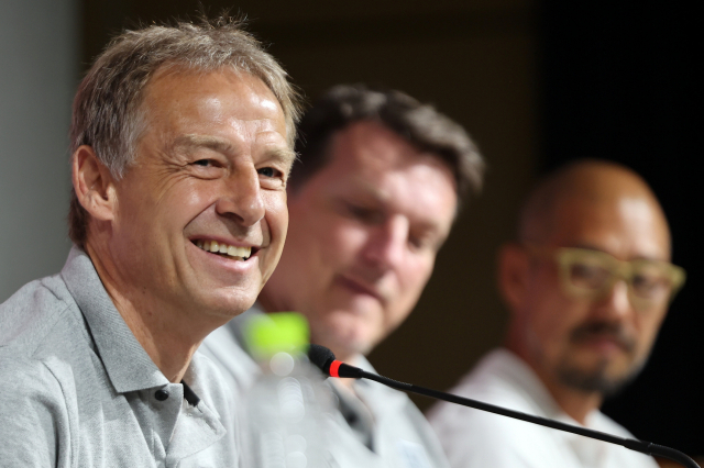 위르겐 클린스만(왼쪽) 감독이 이끄는 한국 축구 국가대표팀은 다음 달 8일 웨일스와의 평가전에 이어 13일 사우디아라비아와 맞붙는다. 대표팀은 10월에는 튀니지와 A매치를 치른다. 연합뉴스