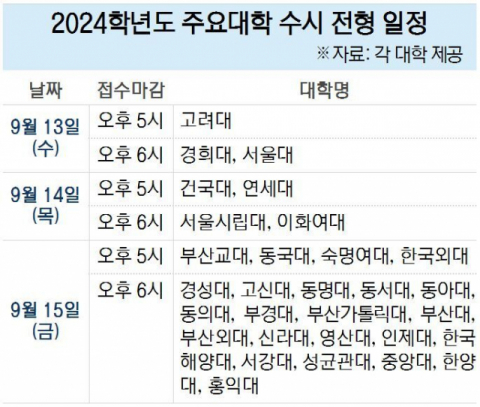 [입시 톡톡] 대학별 수시일정 꼭 확인하세요