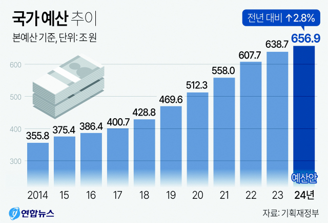 추경호 경제부총리 겸 기획재정부 장관이 지난 24일 세종시 정부세종청사에서 2024년 예산안 및 2023~2027년 국가재정운용계획을 발표하고 있다. 연합뉴스