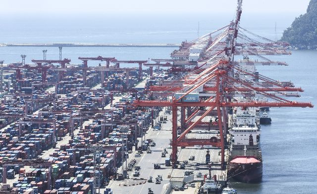 부산항에서 컨테이너 하역작업이 이뤄지고 있는 모습. 연합뉴스