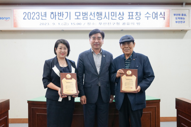 부산 부산진구청(구청장 김영욱)은 (사)부산진발전협의회 박상국 이사장과 (사)1004운동부산본부 양윤희 이사장이 부산시 모범선행시민상을 수상했다고 밝혔다.