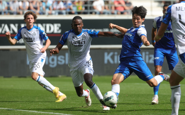 벨기에 주필러리그 KAA 헨트 미드필더 홍현석은 3일 열린 브뤼게와의 홈 경기에서 시즌 1·2호골을 기록했다. AFP연합뉴스