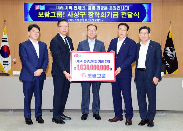 이날 보람그룹은 토지교환으로 발생된 이익금 16억 3천800만 원을 (재)사상구장학회에 기탁했다.