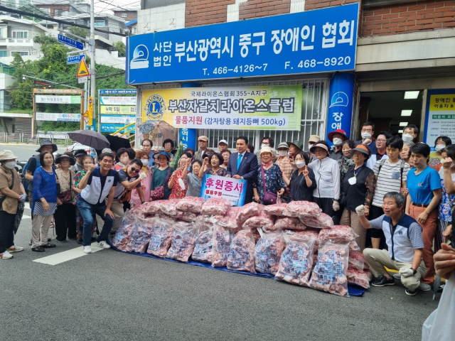 [포토뉴스] 부산자갈치라이온스클럽, 중구 장애인협회 육류 후원