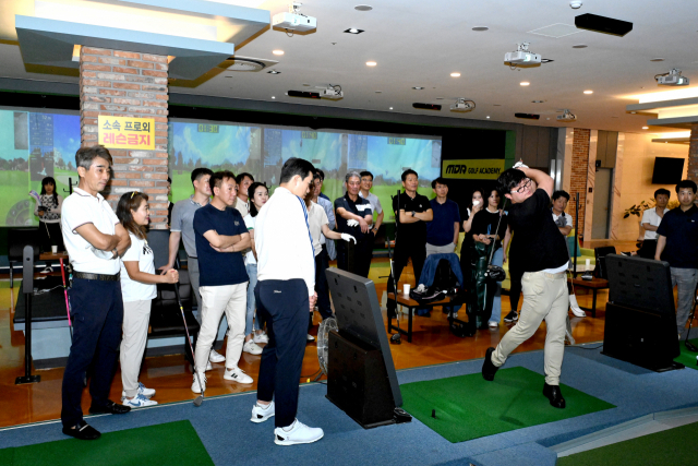 국내 정상급 대규모 스크린골프시설을 갖춘 양산골프파크에서 진행된 이날 행사는 16기 원우 60명이 참석한 가운데 열렸다. 이 프로는 각 타석에서 연습 중인 원우 한 사람 한 사람의 문제점에 대해 원포인트 레슨하고 포토 타임과 사인회를 가져 원우들로부터 큰 호응을 받았다.