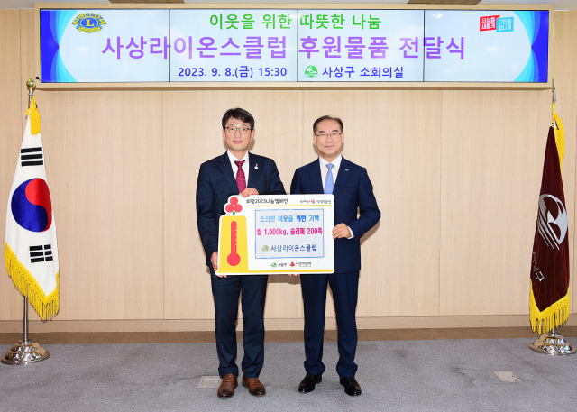부산 사상구(구청장 조병길)는 지난 8일, 사상라이온스클럽(회장 최춘호)으로부터 백미 1,000kg와 슬리퍼 200족을 기탁 받았다.