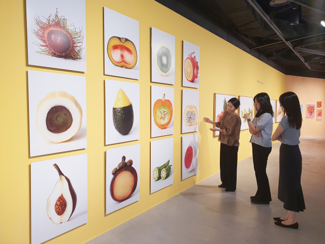 신세계 센텀시티점 6층 갤러리에서 내달 15일까지 ‘놀러오세요, 과일동산’ 전시회가 열린다. 이번 행사에는 다양한 매체를 활용한 도로시엠윤 등 작가 6인의 작품 78점이 전시된다. 신세계백화점 제공
