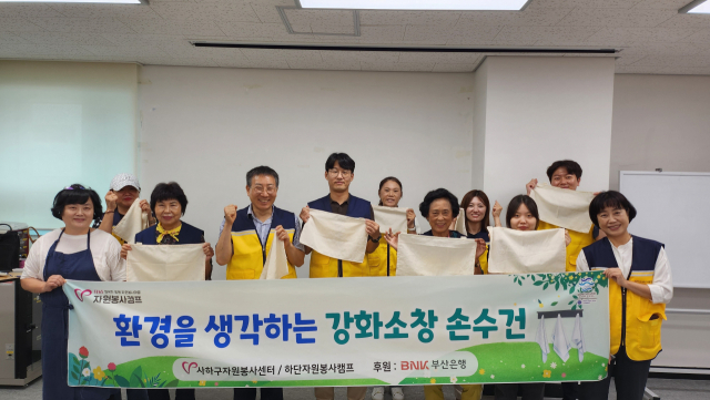 하단 자원봉사 캠프장과 1365나눔포털을 통해 신청한 봉사자 등 총 10여 명이 참여해 강화소창으로 손수건을 만들었다.