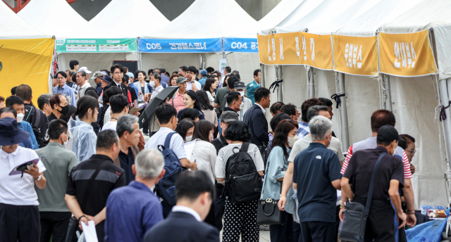 ‘2023 중구 일자리박람회’가 21일 오후 부산 중구 유라리광장에서 열렸다. 60여 개 구인 업체가 참가한 이번 박람회는 현장 채용 면접과 청년 채용관 운영 및 경력 단절 여성 일자리 상담 등이 이뤄졌다.