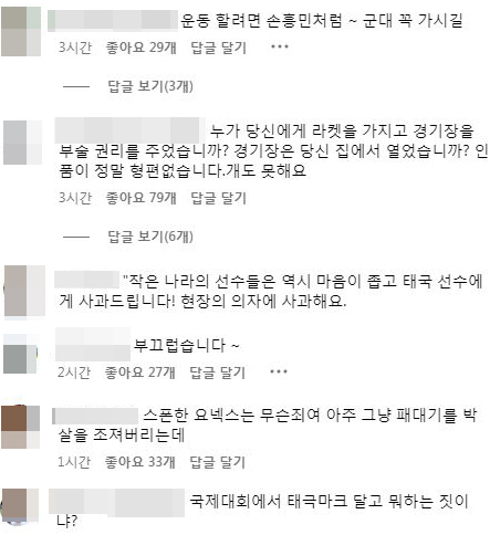 한 네티즌은 "국제대회에서 태극마크 달고 뭐하는 짓이냐?"며 권순우를 질타했고, 또 다른 네티즌 역시 "부끄럽다"고 했다. 그 외에도 "후원사가 무슨 죄냐, 라켓을 저렇게 박살을 냈는데"라는 등 비판하는 댓글도 줄을 이었다.