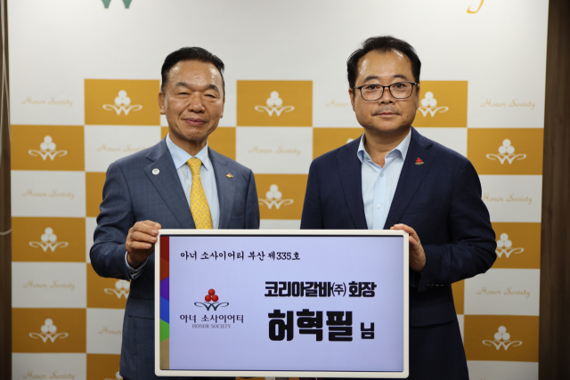 아너 소사이어티는 사랑의열매가 운영하는 1억 원 이상 고액기부자 모임이며, 허혁필 회장은 5년간 1억 원 기부를 약정하며 부산 335호 아너 소사이어티 회원이 됐다.