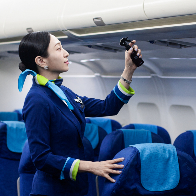 에어부산(대표 안병석)은 지난달 25일부터 여행의 설렘을 더하는 동시에 탑승객의 편안한 여행과 쾌적한 기내 환경을 조성하고자 국내·국제 전 노선에 향기 서비스를 제공하고 있다. 서비스에 사용되는 기내 방향제는 부산 지역 조향 업체와 함께 협업해 제작했다. 향 선정에는 에어부산 임직원들이 직접 참여해 설문조사를 바탕으로 최종 결정되었다. 이 방향제는 안정성과 신뢰성을 상징하는 머스크, 신선함과 차분함이 느껴지는 자스민과 만다린 등 화사하고 풍부한 느낌을 주는 향으로 제작됐다.