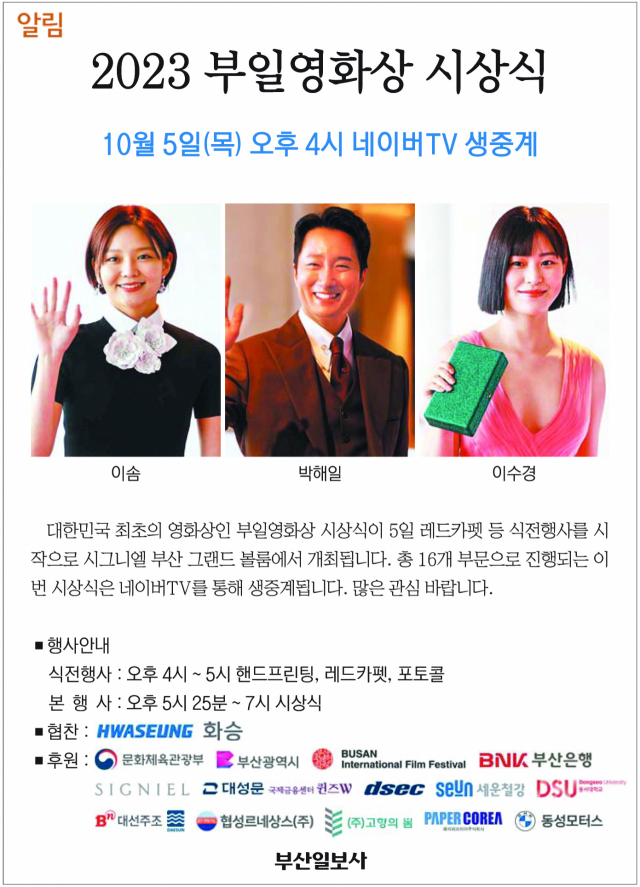[알림] 2023 부일영화상 시상식…10월 5일(목) 오후 4시 네이버TV 생중계