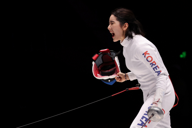 펜싱 여자 에페 단체전 금메달과 개인전 은메달을 수확한 부산시청 소속 송세라. 연합뉴스