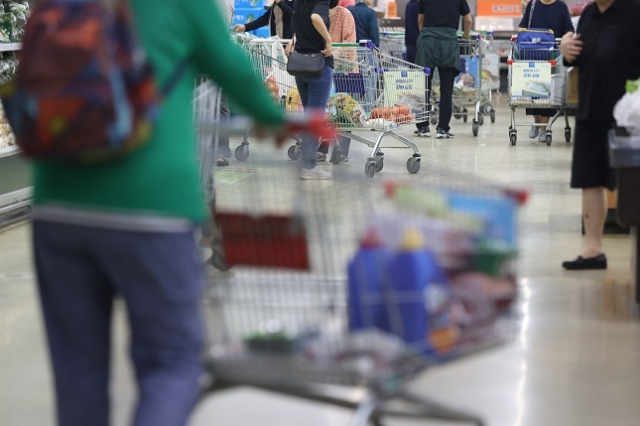 소비자물가가 최근의 국제유가와 농산물 가격 상승 영향으로 좀체 잡히지 않는 모습이다. 9월 상승률은 3.7%로, 지난 4월 이후 5개월 만에 최고를 기록했다. 사진은 서울의 한 대형마트 모습. 연합뉴스