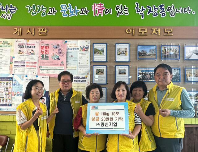 (주)명신기업(대표 최동옥)은 최근 이웃돕기 성금 20만 원과 백미를 부산 사상구 학장동행정복지센터(동장 박지선)에 기탁했다.