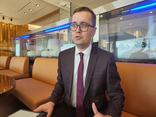 부산 해운대구 벡스코 제2전시장에서 5일 개막한 ‘2023 아시아 창업 엑스포(FLY ASIA)’에서 청년 오픈 이노베이션(개방형 혁신) 챌린지 시상식이 열렸다. 위 사진은 이날 오전 <부산일보>와 만난 에스토니아 마르구스 매기 전자정부 고문.