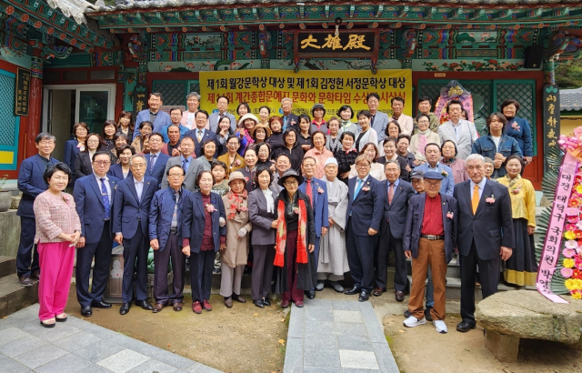 부산동래차밭골문화원(이사장 월강스님)은 7일 부산 동래구 금어사에서 제1회 월강문학상 대상과 계간 종합문예지 ‘문화와 문학타임’ 수상자 시상식을 가졌다.