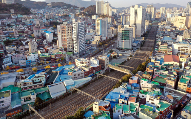 경부선 철도 지하화 등 ‘교통지옥 부산’의 악명을 떨쳐낼 수 있는 교통 인프라 구축이 급물살을 타고 있다. 부산 동구를 가로지르는 경부선 철길. 부산일보DB