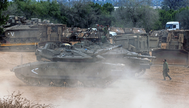 이스라엘군 탱크가 9일 가자지구 접경으로 집결하고 있다. 이스라엘 지상군이 하마스를 소탕하기 위해 가자지구로 진격하면 5차 중동전쟁으로 확전될 우려가 크다. 로이터연합뉴스