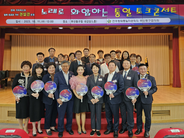 민주평화통일자문회의 부산동구협의회(회장 강영자)는 지난 11일 부산 동구청 대강당에서 ‘노래로 화합하는 통일토크콘서트’를 열었다.