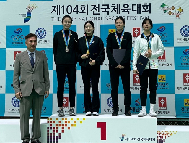 펜싱 일반부 여자 에페 개인전에서 금메달을 딴 부산시청 송세라(가운데). 부산시체육회 제공