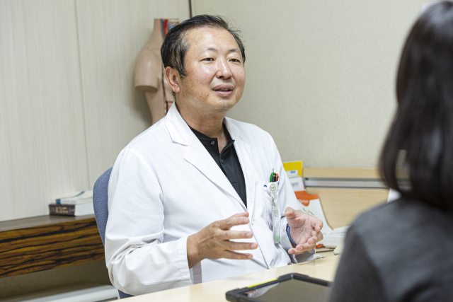대장암 환자의 수술 후 식이요법에 대해 설명하고 있는 조홍재 부산대병원 대장항문외과 교수.