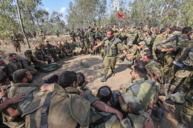이스라엘 지상군 병력이 15일(현지 시간) 이스라엘 남부 도시 아슈켈론 인근 지역에 집결해 있다. 바이든 미국 대통령은 이스라엘의 가자지구 재점령 가능성에 부정적 입장을 피력하며 자제를 촉구했다. AFP연합뉴스