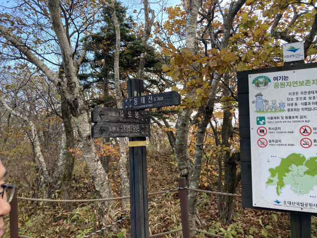 오대산국립공원 진고개 주차장에서 산행을 시작한다.