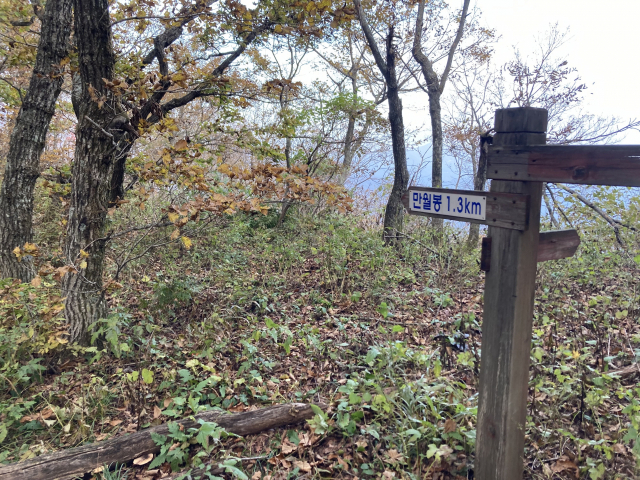 응복산을 지나자 산길이 한껏 고도를 낮춘다. 얼마나 내려가는지 두려울 정도로 떨어진다. 그러다가 다시 오름길이 시작되면서 작은 봉우리 하나를 넘는데 마늘봉(1127m)이다. 선두와 거리가 점점 멀어진다. 중간 대오를 책임진 명용익 산행대장이 적당한 거리로 안내해 준다. 너무 처지지 않게, 그러나 너무 힘들지 않게 챙겨주는데 민폐여서 고마울 따름이었다.