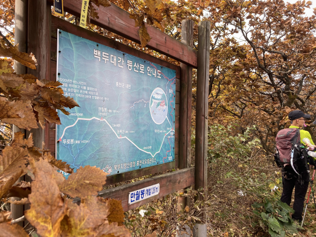 15번의 오르내림에 잔뜩 겁을 먹었지만 아직 체력이 남아서인지 그리 힘들지는 않았다. 두로봉(1422m)에서 상황봉으로 오대산의 절경을 즐길 수 있는 길이 있다. 다음에 꼭 와 봐야겠다고 다짐 하나를 적는다.
