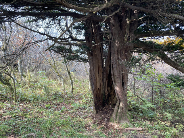 만월봉에서 짙은 가을빛으로 물드는 떡갈나무 군락을 뒤로하고 응복산으로 간다. 한눈에 보기에도 오랜 세월의 흔적을 온몸에 새긴 아름드리 주목 한 그루가 있다. 둥치의 반은 썩어서 반원 형태이지만, 여전히 잎은 푸름을 자랑하고 있다. 나무의 기운이 좋아서인지 여러 사람이 쉬어간 흔적이 보인다.