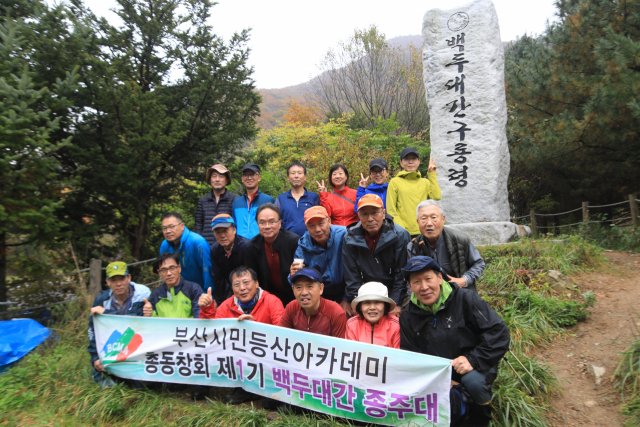 산행을 마친 부산등산아카데미 회원들이 기념사진을 찍고 있다.