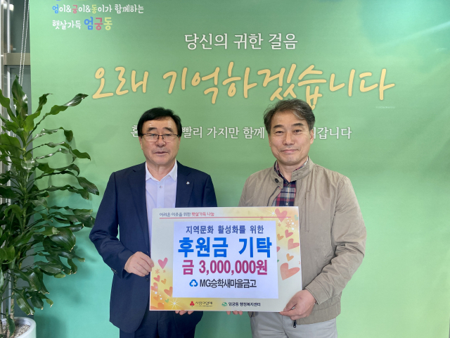 사상구 엄궁동 주민자치위원회(위원장 송광수)는 지난 13일 승학새마을금고(이사장 양동만)로부터 지역문화 활성화를 위한 후원금 300만 원을 전달받았다.