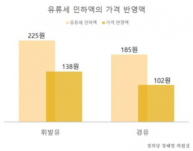 장혜영 의원실, 2년간 유류세 인하 효과 분석