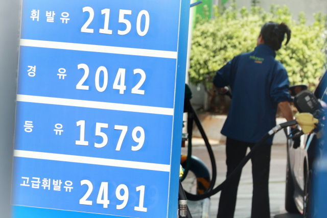 지난 9일 서울의 한 주유소에 게시된 휘발유·경유 가격. 연합뉴스