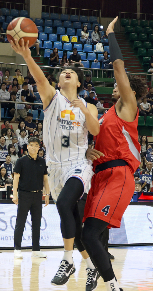 지난 15일 전북 군산월명체육관에서 열린 부산 KCC와 울산 현대모비스의 '2023 MG새마을금고 KBL 컵대회' 결승에서 부산 허웅이 레이업 슛을 시도하고 있다. 연합뉴스