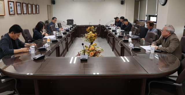 지난 12일 부산일보사 4층 회의실에서 열린 제40회 요산김정한문학상 심사. 이재찬 기자 chan@
