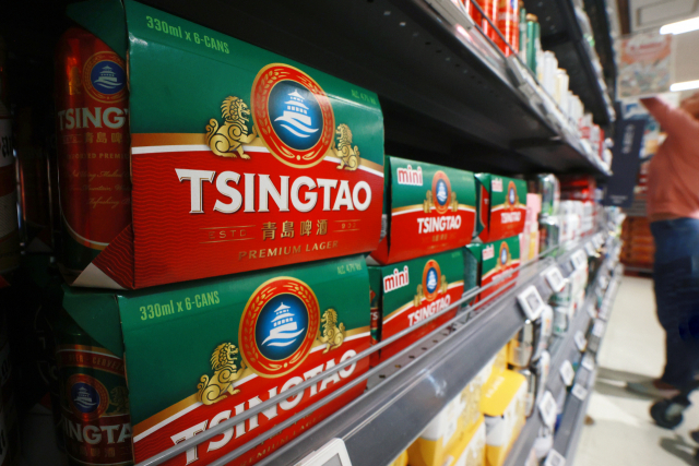 중국의 4대 맥주인 칭다오 맥주 생산공장의 원료에 방뇨하는 영상이 폭로돼 논란이 일고 있는 가운데 23일 서울 시내 한 마트에 칭다오 맥주가 진열돼 있다. 연합뉴스