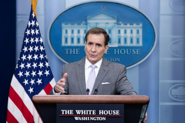 23일(현지 시간) 미국 워싱턴DC에서 기자회견을 하는 존 커비 미 국가안전보장회의 전략소통조정관. EPA연합뉴스
