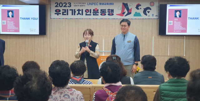 유엔PEC사회적협동조합(이사장 김희경)은 10월 18일 부산 시민을 대상으로 한 ‘우리가치 인문동행’ 인문학 강의를 부산연탄은행(대표 강정칠) 센터 교육원에 개설하여 진행하고 있다.