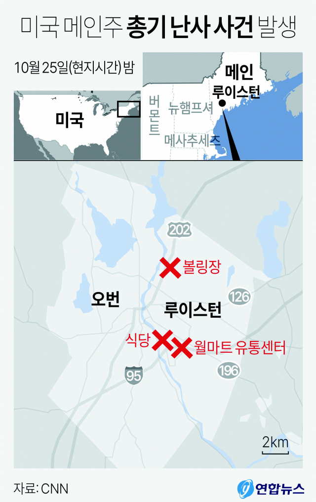 미 메인주 루이스턴 볼링장·식당서 범행