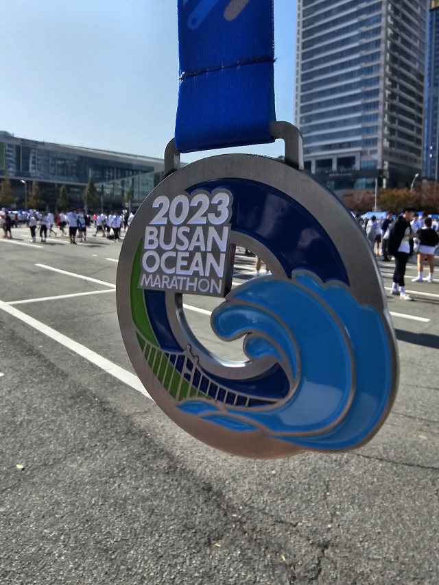 부산바다마라톤에 나선 참가자들은 출발점과 레이스 코스 곳곳에서 인증 사진을 찍으며 2023년 가을의 추억을 남겼다. 참가자들은 벡스코 광장 한가운데 마련된 기록 포토존에서 자신의 기록과 함께 추억을 간직했다. 참가자들은 올해 광안대교와 파란 물결을 형상화한 2023 부산바다마라톤 완주 인증 메달을 목에 걸고 삼삼오오 모여 인증샷을 남겼다.