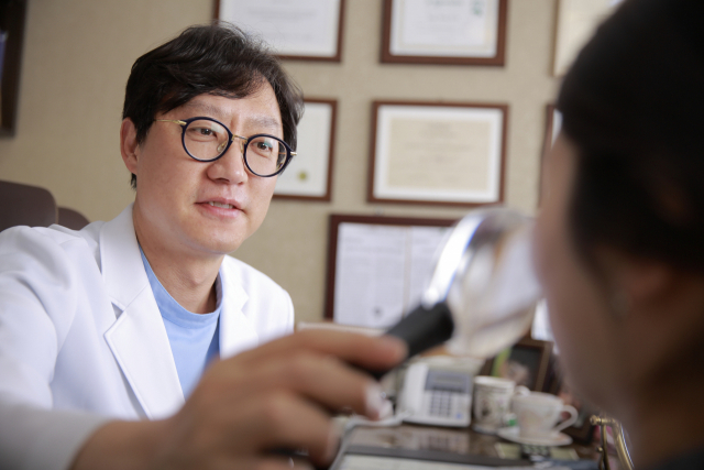 고운세상 김양제장봉석피부과의 장봉석 대표원장이 환자를 진료하고 있다. 고운세상 김양제장봉석피부과 제공