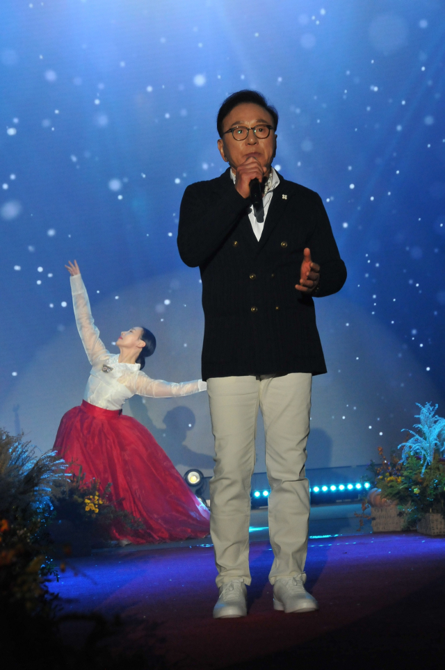 박 회장은 1970~80년대 히트곡인 가수 정미조의 ‘개여울’을 청아한 목소리로 부르면서 행사의 시작을 알렸다. 그는 이어 나훈아의 ‘가라지’, 고전 무용과 잘 어우러진 ‘인생아 고마웠다’ 등을 열창했고, 관객들과 떼창으로 조용필의 ‘잊혀진 사랑’ 등을 불러 감동과 여운의 무대를 선사했다. 또 걸쭉한 토크로 관객들의 흥과 폭소를 자아내기도 했다.
