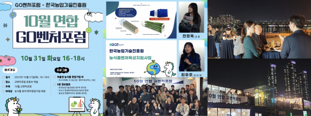 고벤처포럼과 한국농업기술진흥원은 10월 연합 고벤처포럼을 통해 스타트업들에게 더 많은 지원과 기회를 제공하고 지역 농식품 창업기업들이 더욱 성공적으로 성장할 수 있도록 기여하고 있다.