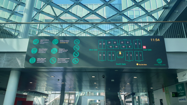 피에라 밀라노 전시장 등을 안내하는 전광판.
