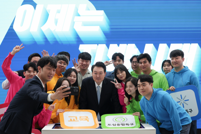 서울 메가시티에 앞서 부산 메가시티가 급하다는 목소리가 나온다. 사진은 윤석열 대통령이 2일 대전시 유성구 대전컨벤션센터에서 열린 2023 지방자치·균형발전의 날 기념식에서 행사 관계자들과 기념 촬영을 하는 모습. 대통령실 제공