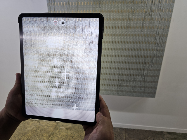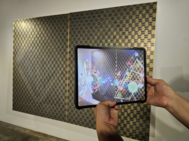 김봉관 작가의 '경계에 서다'. 김 작가는 PCB로 만들어진 작품에서 미적 아름다움을 발견하는데, XR 아트와 만나면서 자신이 느끼는 감정을 관람객에게 더 직접적으로 전달할 수 있게 됐다고 말한다. 오금아 기자